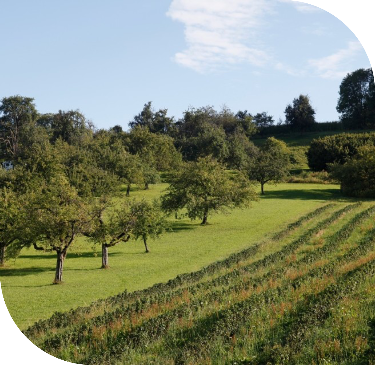 Die perfekte Mischung: Steht man auf dem Höchsten (838 m) hat man bei klarem Wetter eine herrliche Aussicht zum Bodensee (17 km) und den österreichischen und schweizer Alpen.